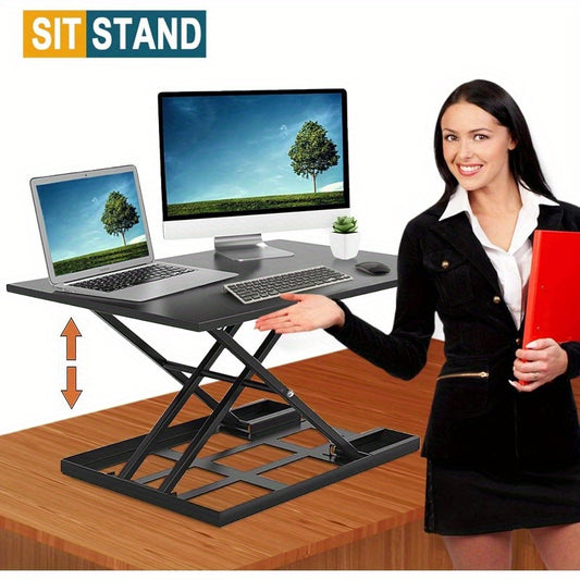 Adjustable Height Standing Desk, Portable and Easy to Move, Foldable Desk, Large Wide Rising Tabletop Computer Table Laptop Home Office Black